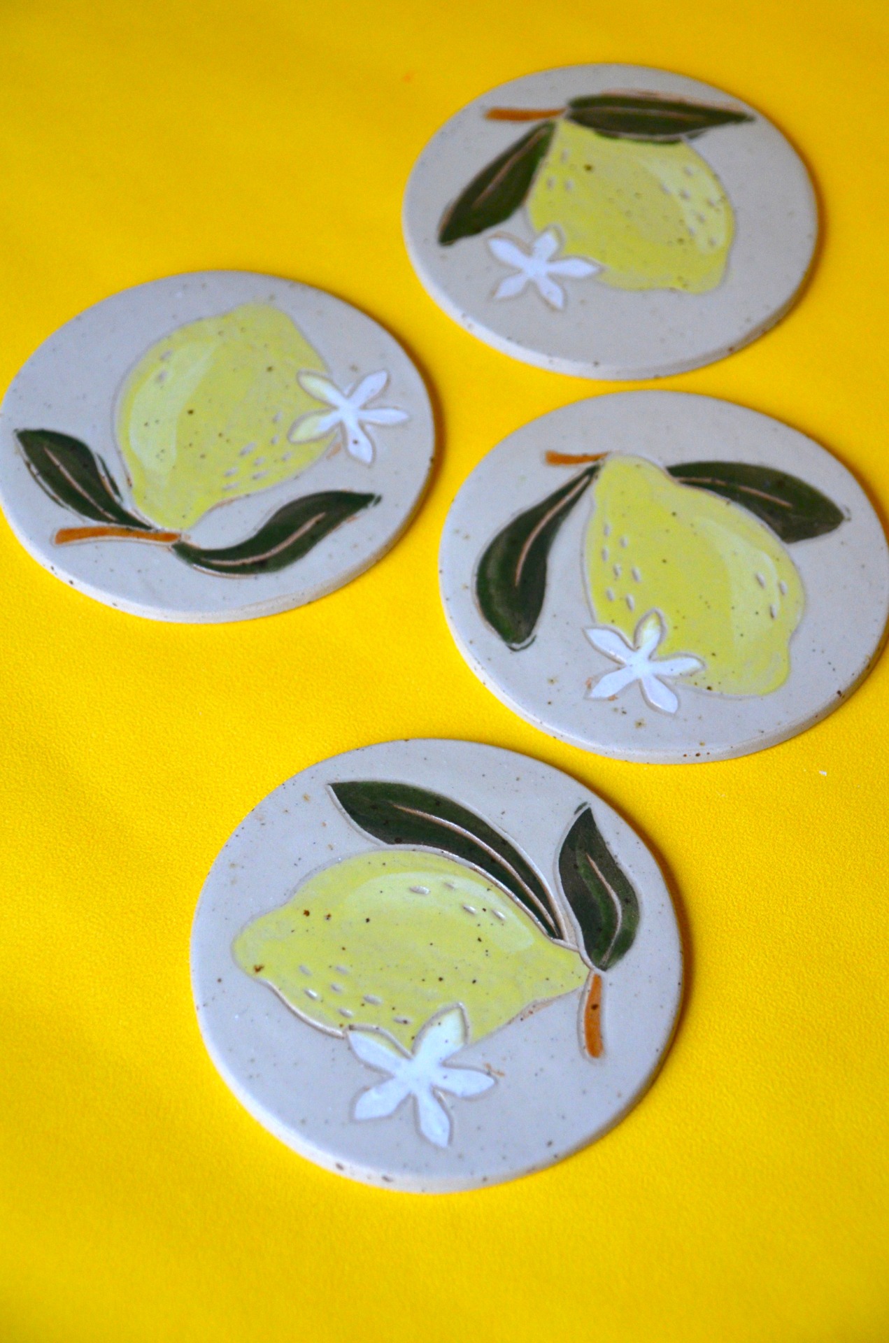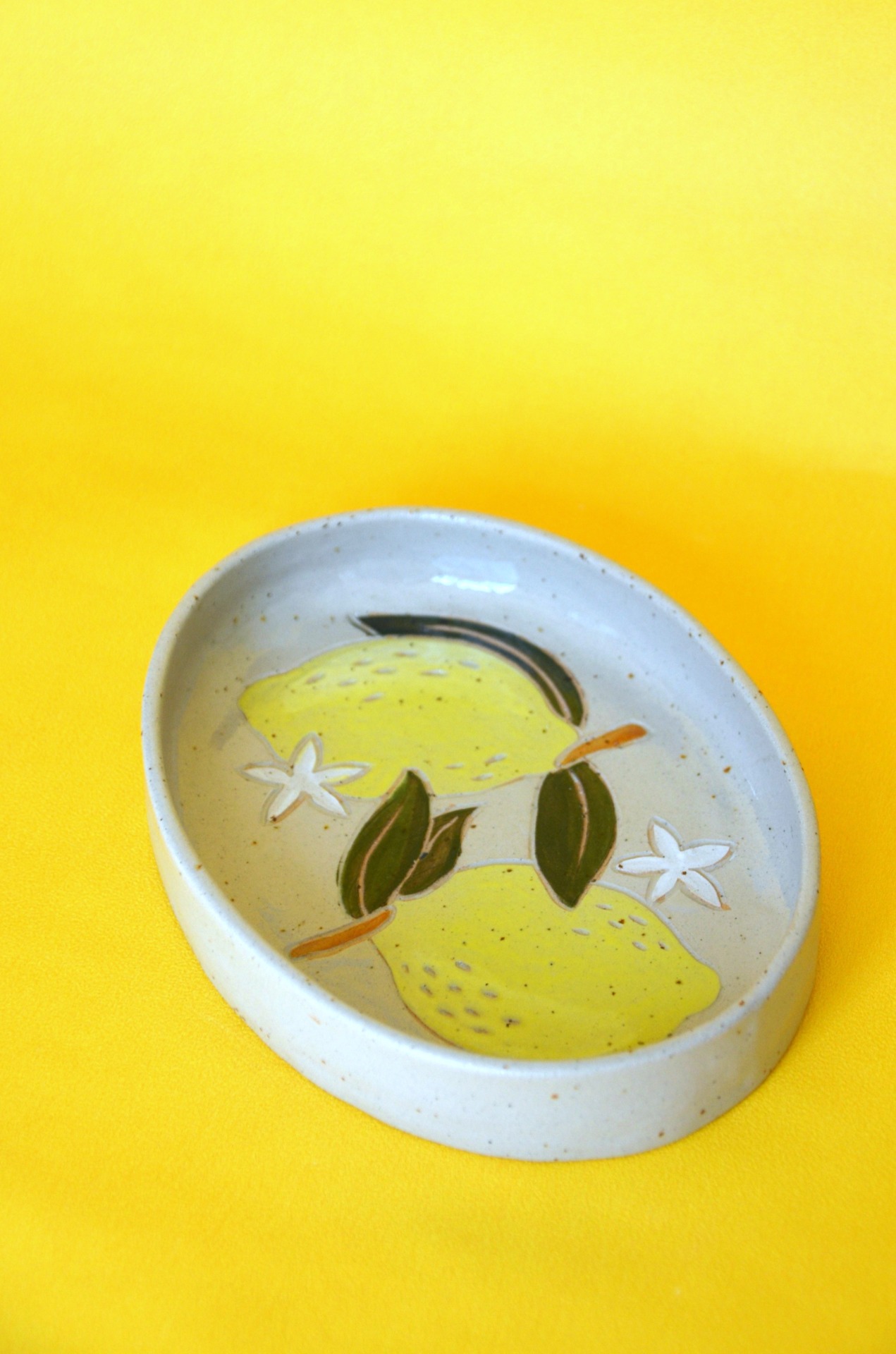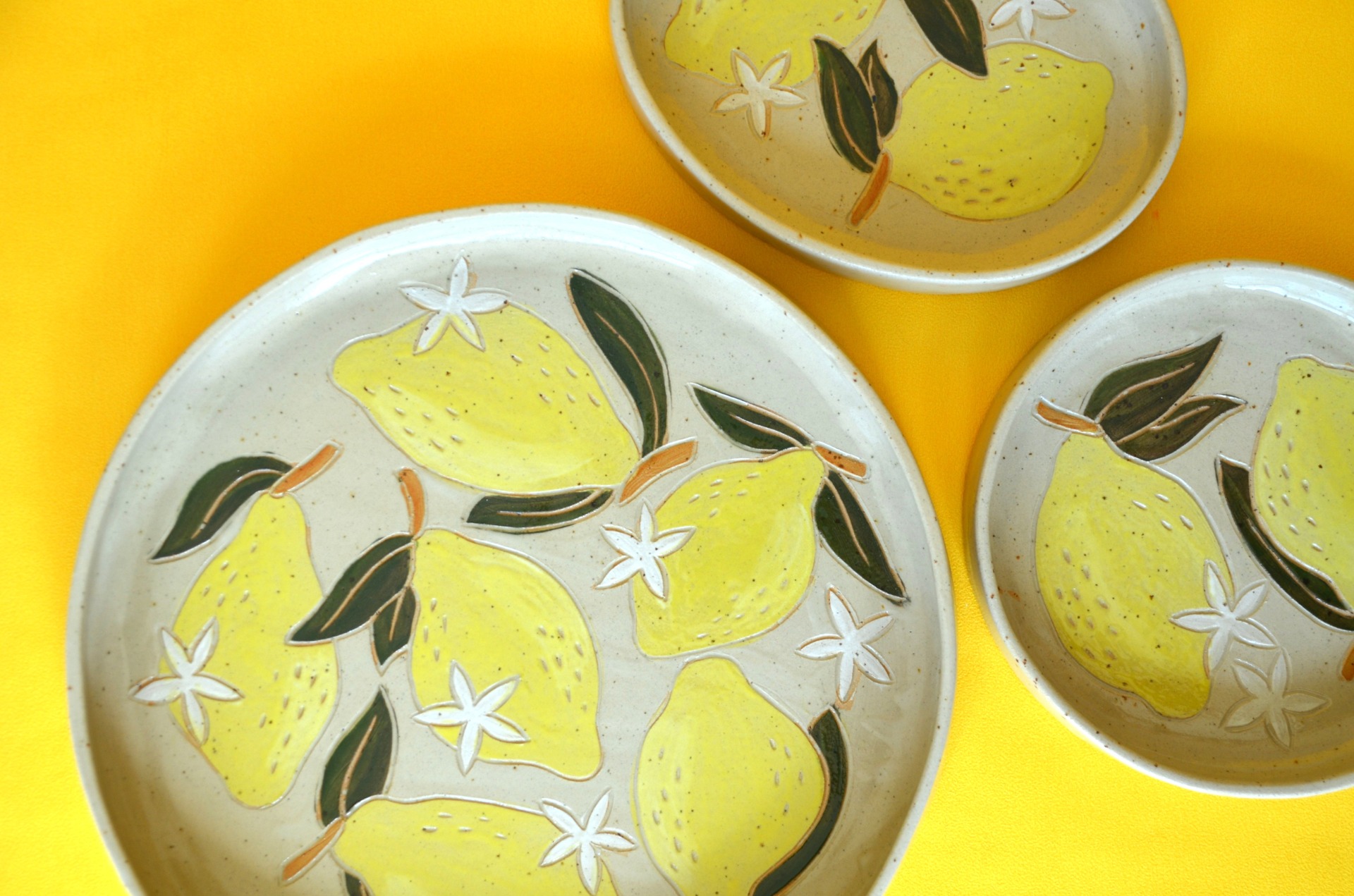 Sitruuna-tarjoilulautanen pieni pyöreä